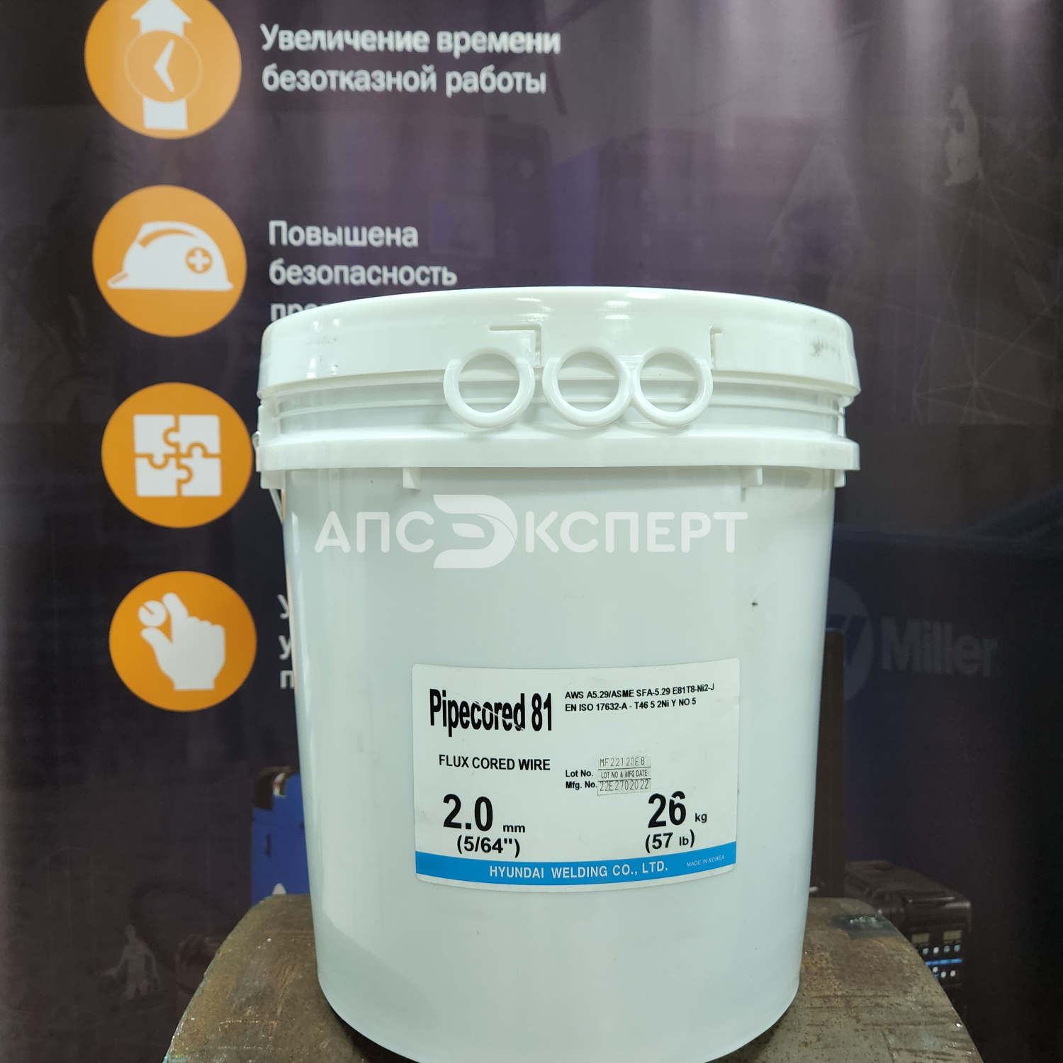 Pipecored 81 (E81T8-Ni2) Hyundai Welding – самозащитная порошковая проволока, характеризуется пониженным содержанием диффузионного водорода и большей прочностью. Сварочная проволока Pipecored81 производится в Южной Корее.